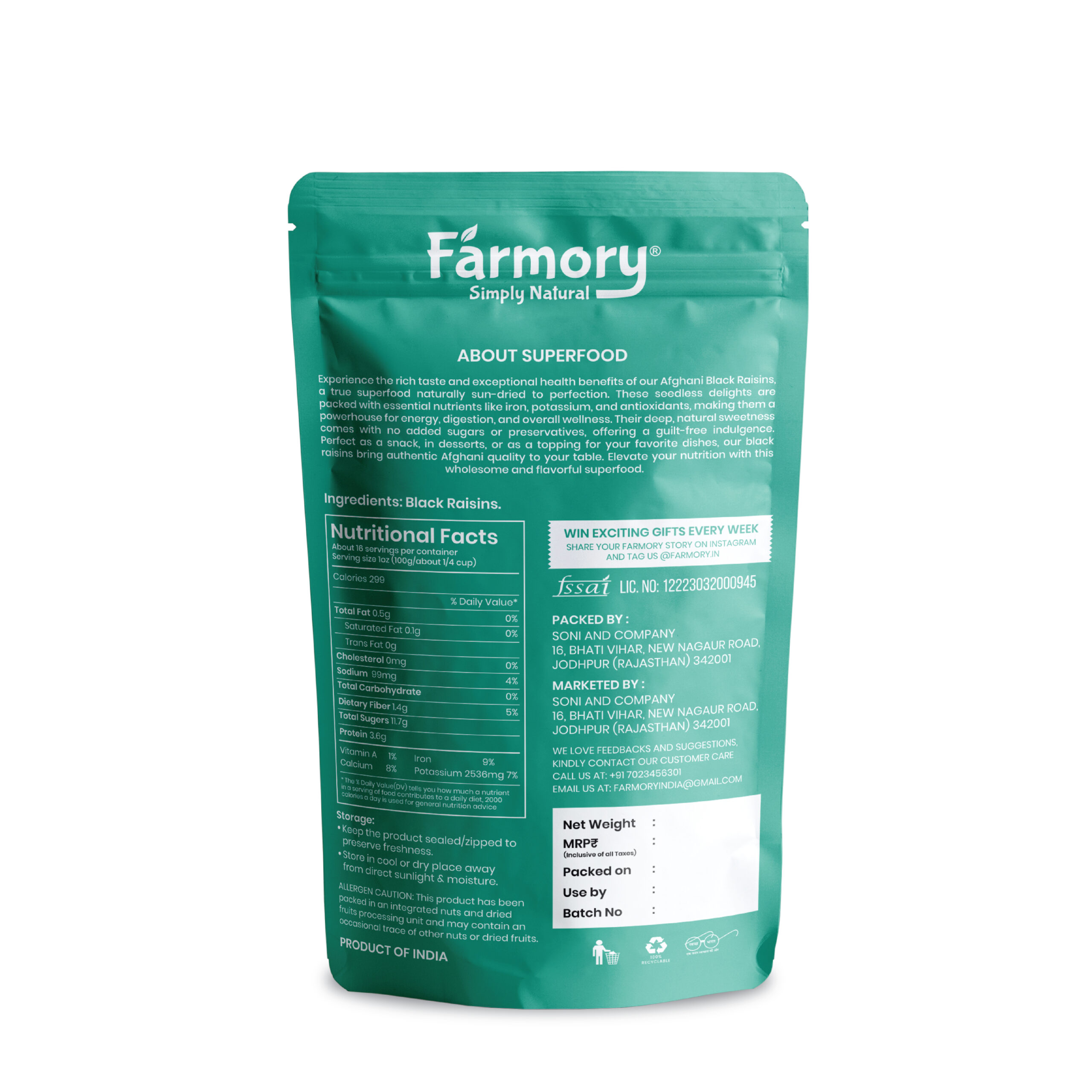 Experience the rich taste and exceptional health benefits of our Afghani Black Raisins, a true superfood naturally sun-dried to perfection. These seedless delights are packed with essential nutrients like iron, potassium, and antioxidants, making them a powerhouse for energy, digestion, and overall wellness. Their deep, natural sweetness comes with no added sugars or preservatives, offering a guilt-free indulgence. Perfect as a snack, in desserts, or as a topping for your favorite dishes, our black raisins bring authentic Afghani quality to your table. Elevate your nutrition with this wholesome and flavorful superfood.