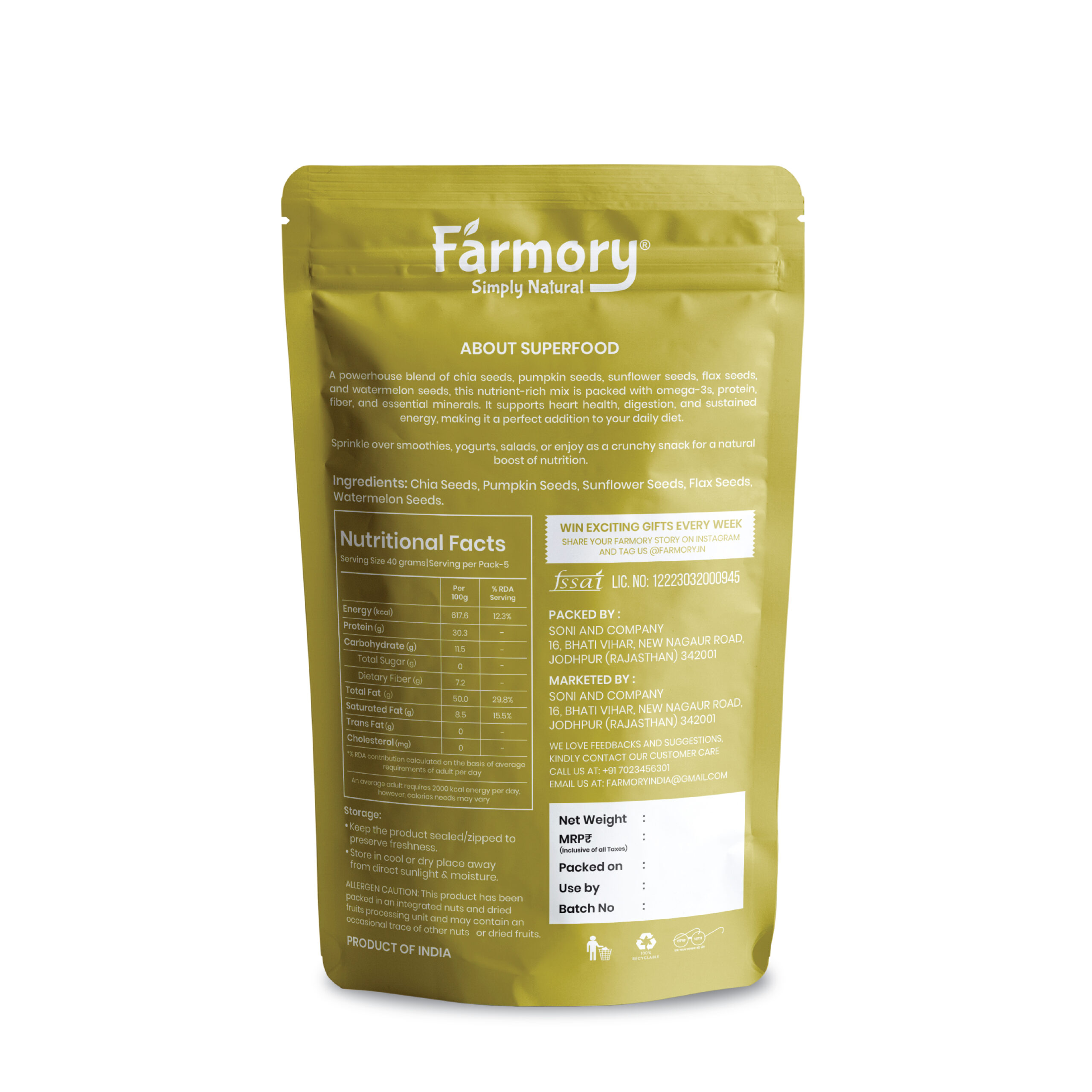 A powerhouse blend of chia seeds, pumpkin seeds, sunflower seeds, flax seeds, and watermelon seeds, this nutrient-rich mix is packed with omega-3s, protein, fiber, and essential minerals. It supports heart health, digestion, and sustained energy, making it a perfect addition to your daily diet. Sprinkle over smoothies, yogurts, salads, or enjoy as a crunchy snack for a natural boost of nutrition.